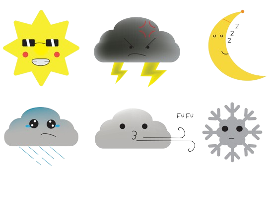 Ces petites icônes météorologiques ont été créées dans le cadre d’un devoir où nous devions concevoir six icônes représentant différentes conditions météorologiques.
