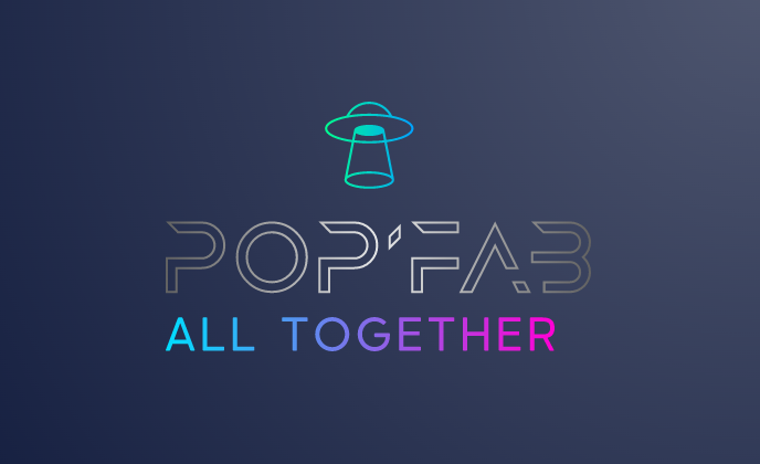Voici le deuxième logo que j’ai créé au même moment pendant le cours du Sprintcamp. Ce logo représente « Pop’fab All Together » avec un style beaucoup plus moderne pour la police et j’ai décidé d’inclure une soucoupe volante.